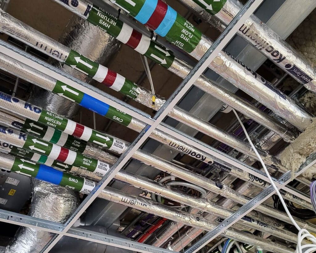 Steel tube installations, chilled water ring mains, void filtration systems, compressed air installations, gas detection systems, BMS installations, fire alarm installations, data installations